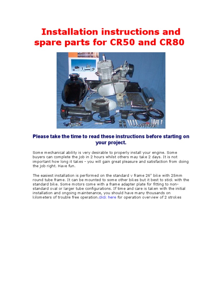 Don't buy a conversion kit before reading these reviews. The electric bike conversion kits come with all necessary parts and tools to renovate your old bike into a powerful version. 80cc bicycle motorcycle stroke gasoline engine kit for diy electric bicycle mountain bike complete set bike gas engine motor. Unfollow gas bicycle kit to stop getting updates on your ebay feed. You'll receive email and feed alerts when new items arrive. Another conversion kit we recommend is the voilamart bicycle conversion kit. Most kits come with instructions and all the parts that you will need. 100mm (fits standard bicycle forks). In this video i convert a kid bike to a mini motorbike. These conversion kits are great for people that would like to motorize their bicycle, save on gasoline, or that are looking for a hobby. The kits include an engine, clutch/transmission, drive chain, gas tank, mounting hardware, cabling. Most of us are emotionally attached to our pedal bicycles and. Installation instructions for the 50cc and 80cc 2 cycle gas bicycle conversion kit.